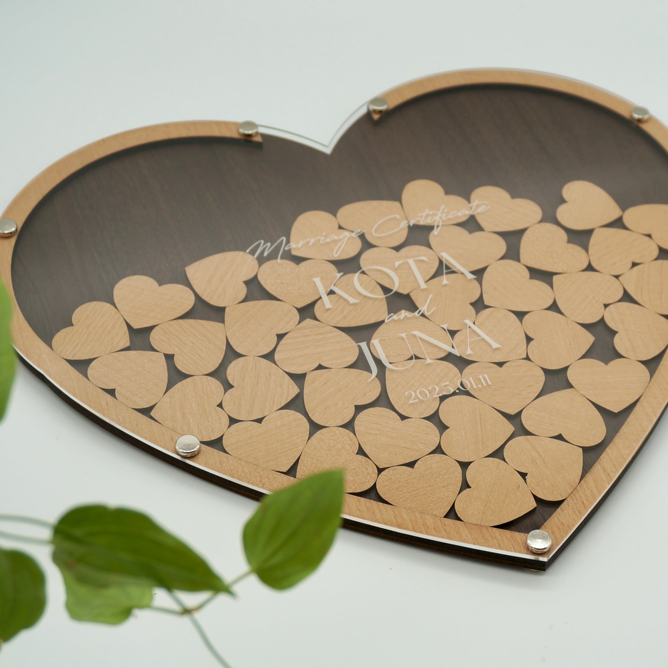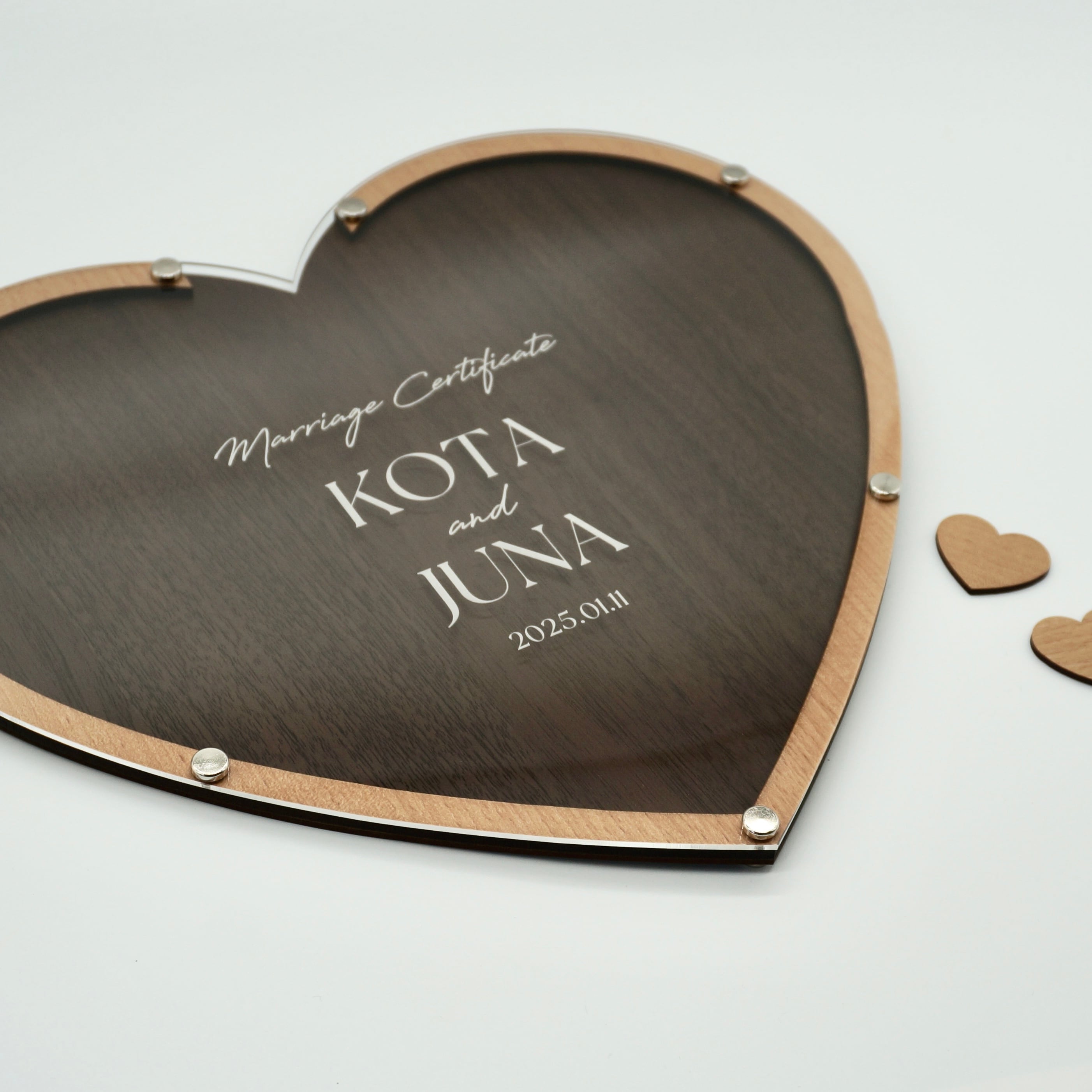 木製のハートチップにはお名前やメッセージを記入することが可能です。(パイロットのツインマーカー使用)
