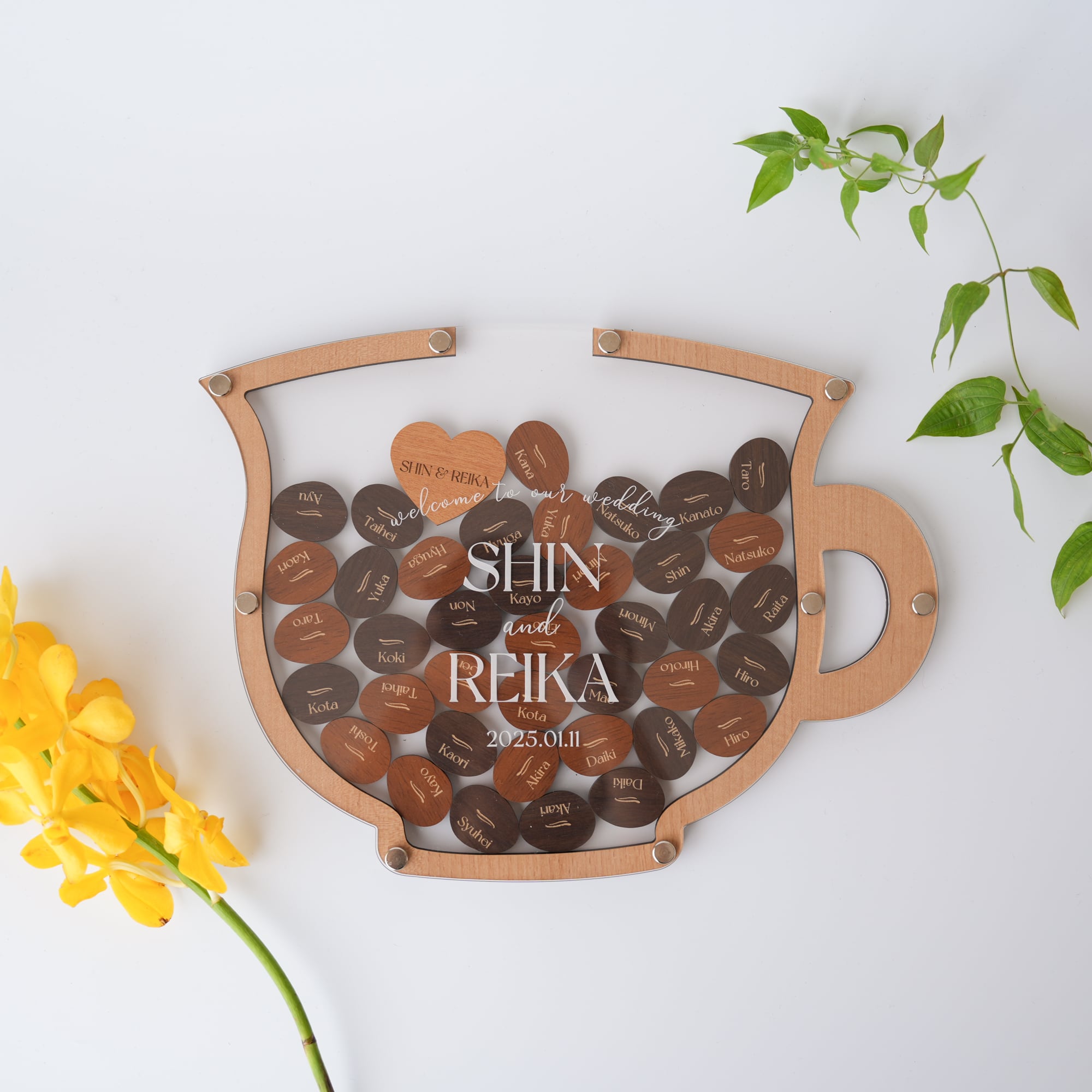 ゲストの皆様のお名前を刻印したチップは、コーヒー豆をイメージしています。
