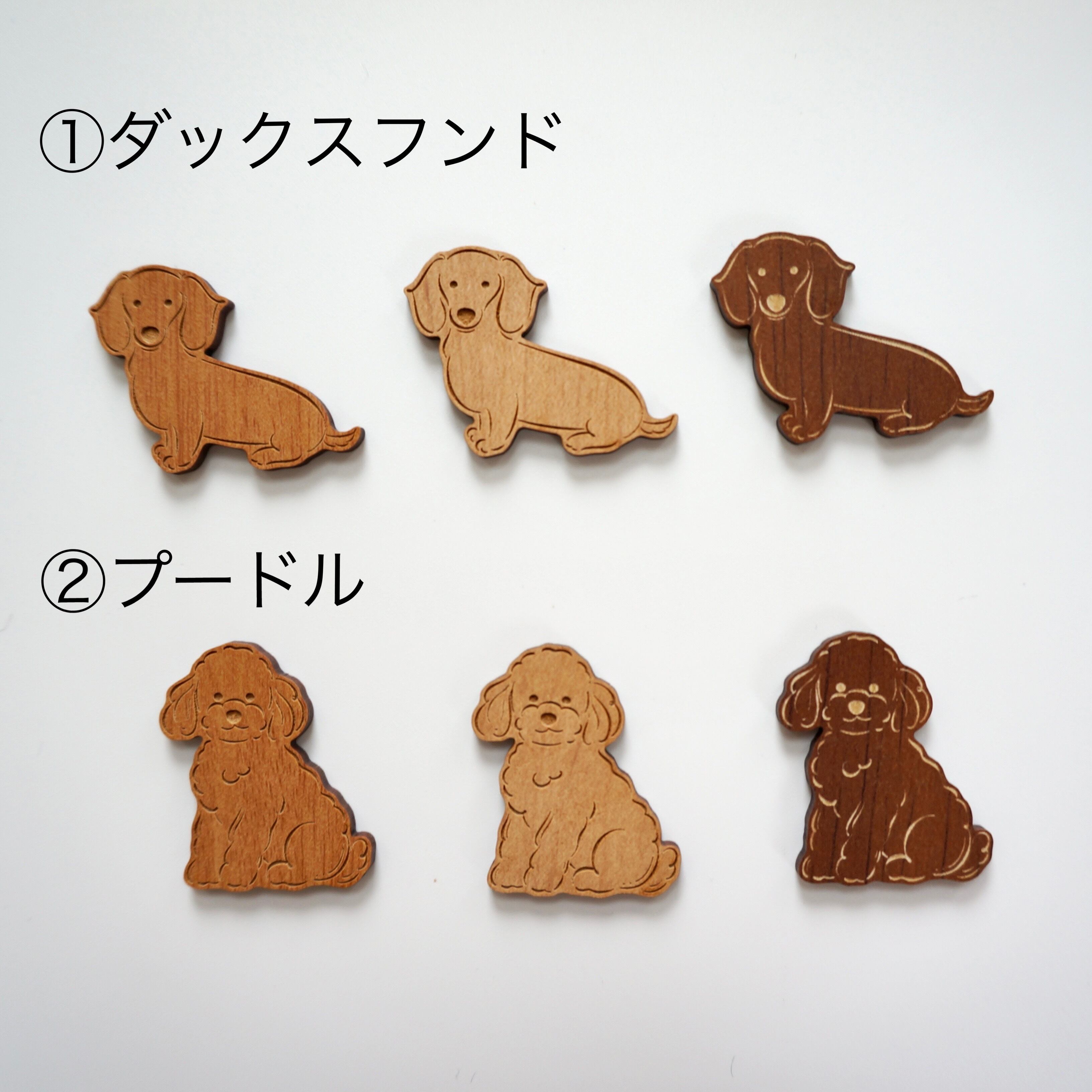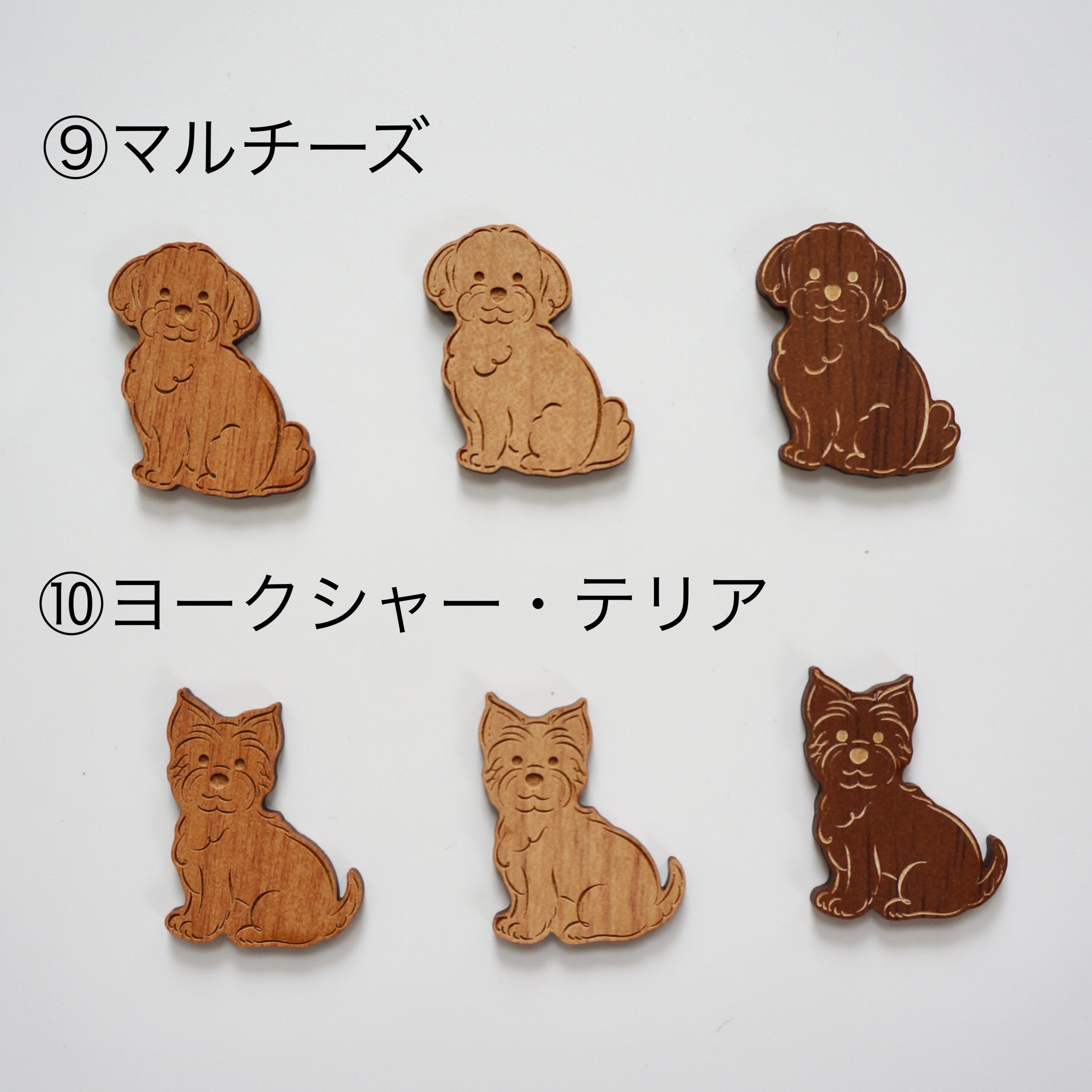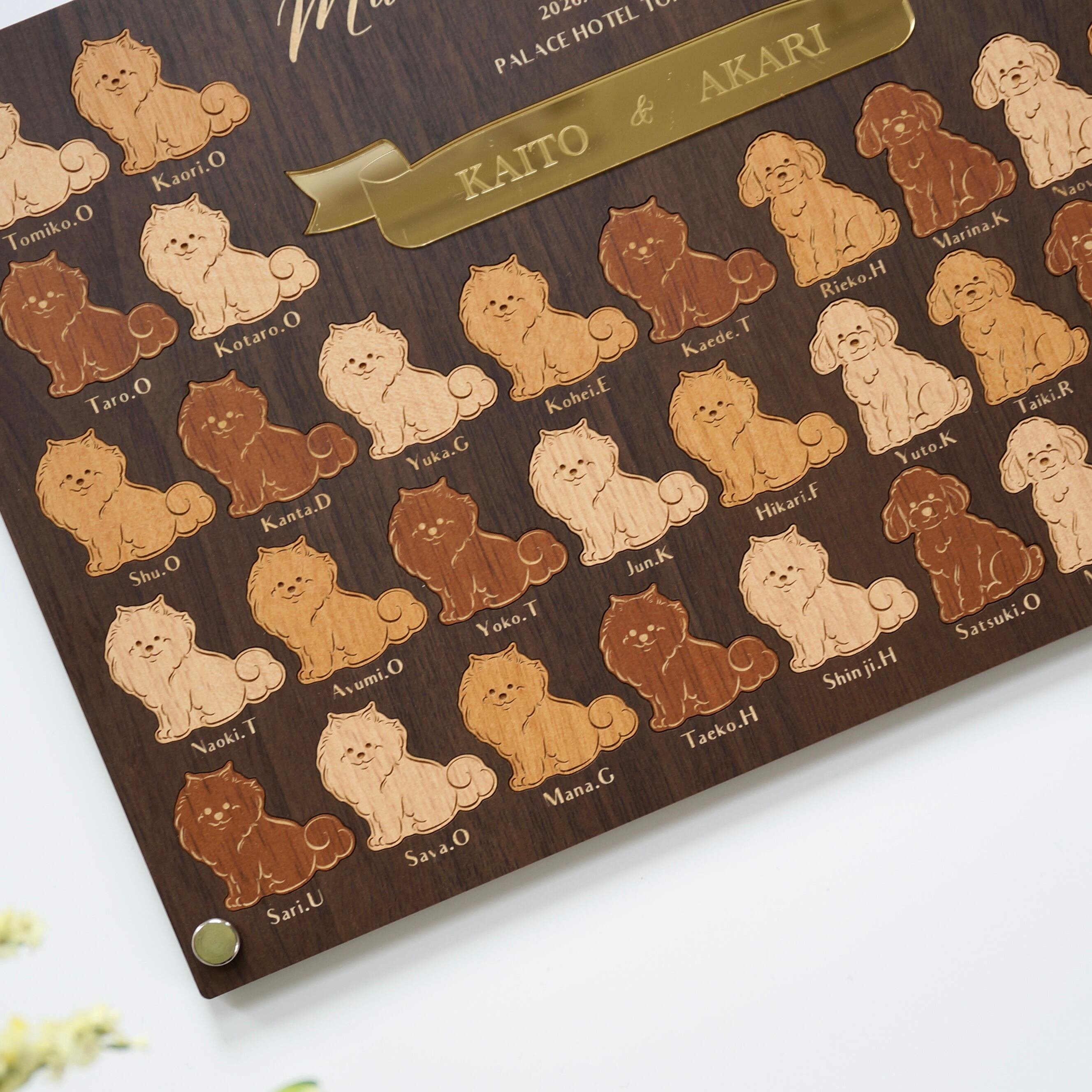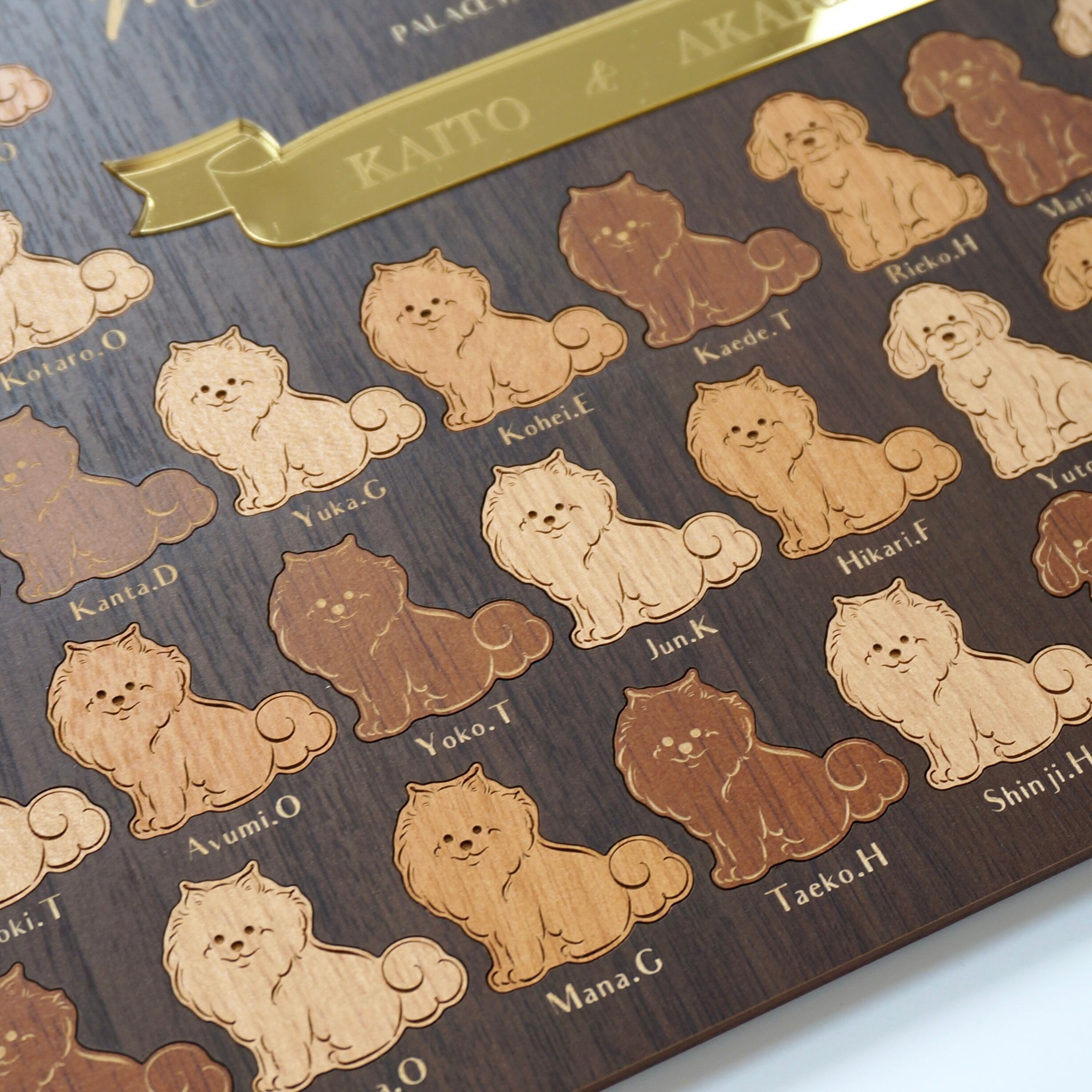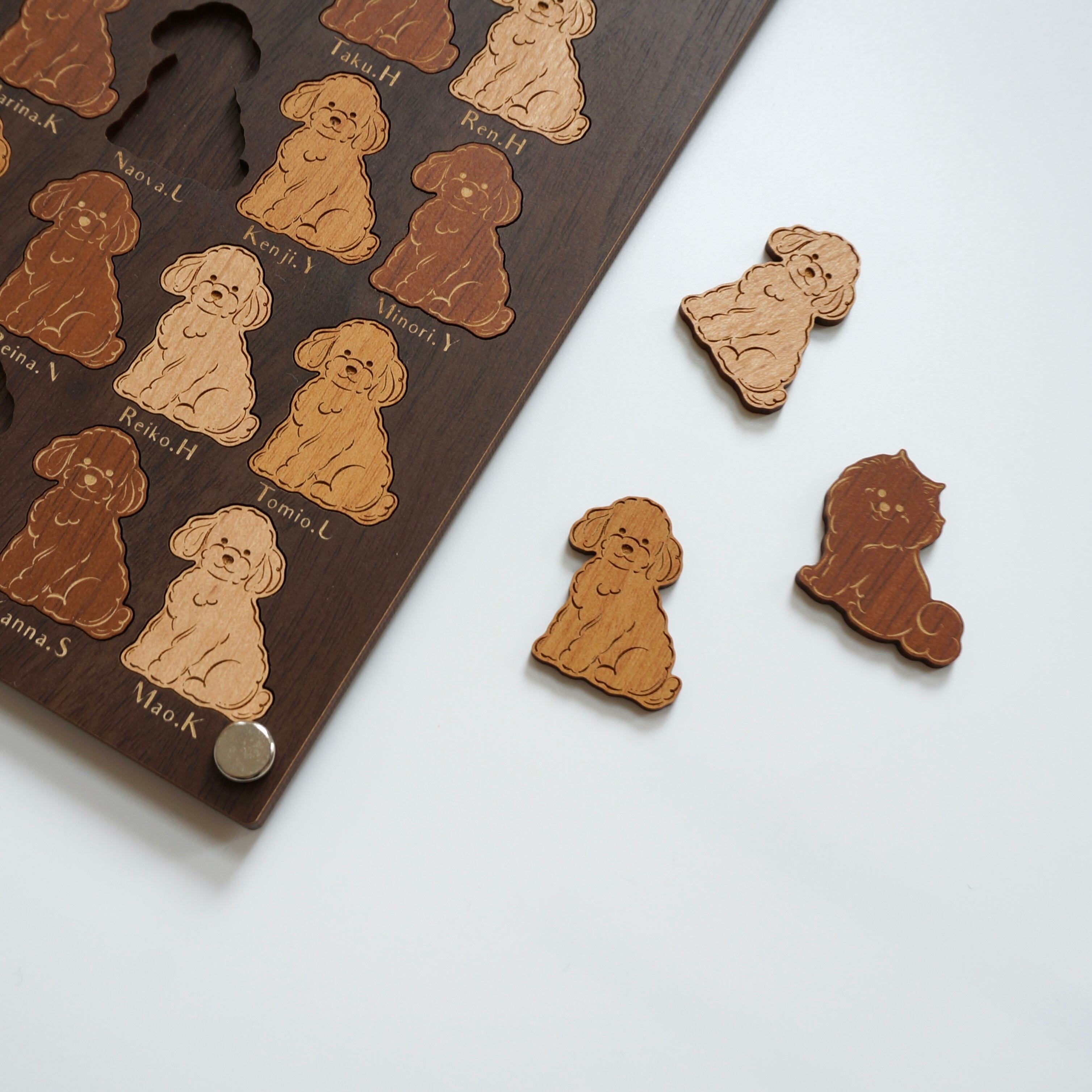 土台:木製ウォルナット色 ワンちゃんピース:木製3色ミックス ゴールドプレート:アクリル製ミラーゴールド