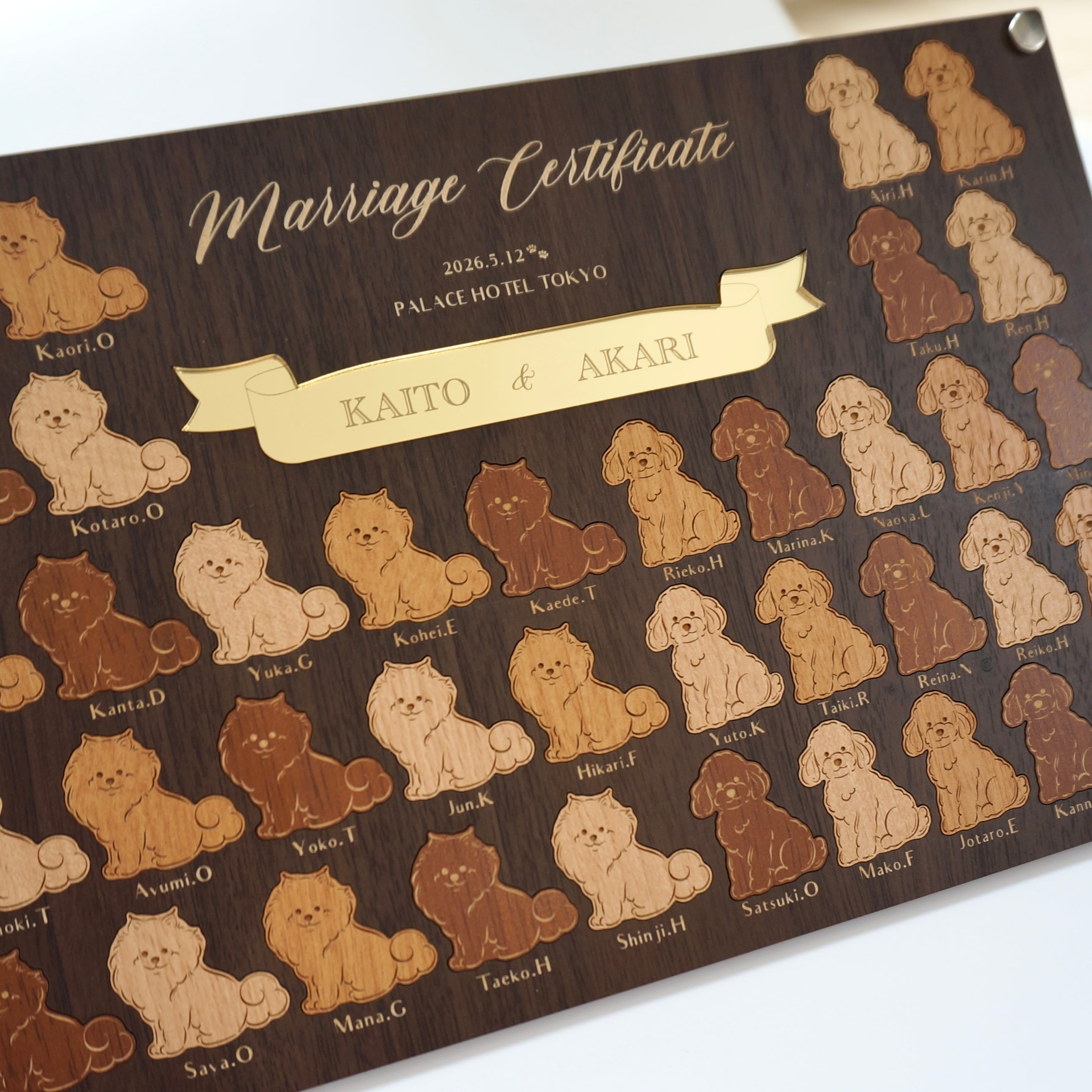カリグラフィータッチなイラストが可愛い♡犬の結婚証明書