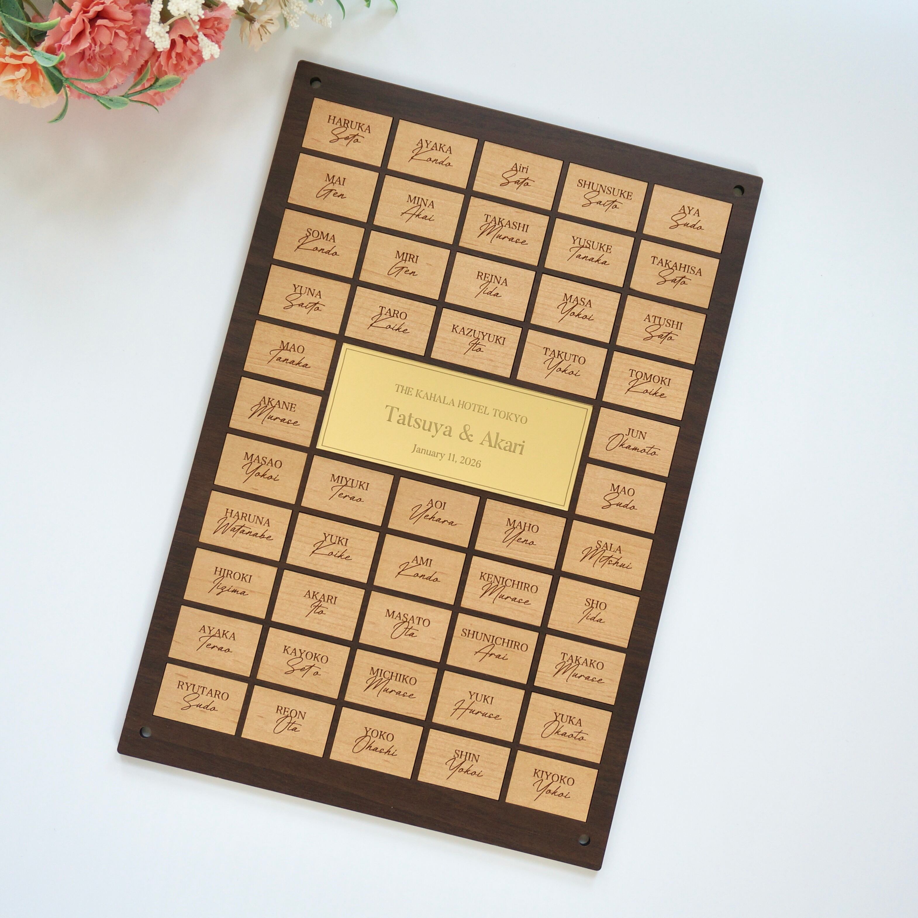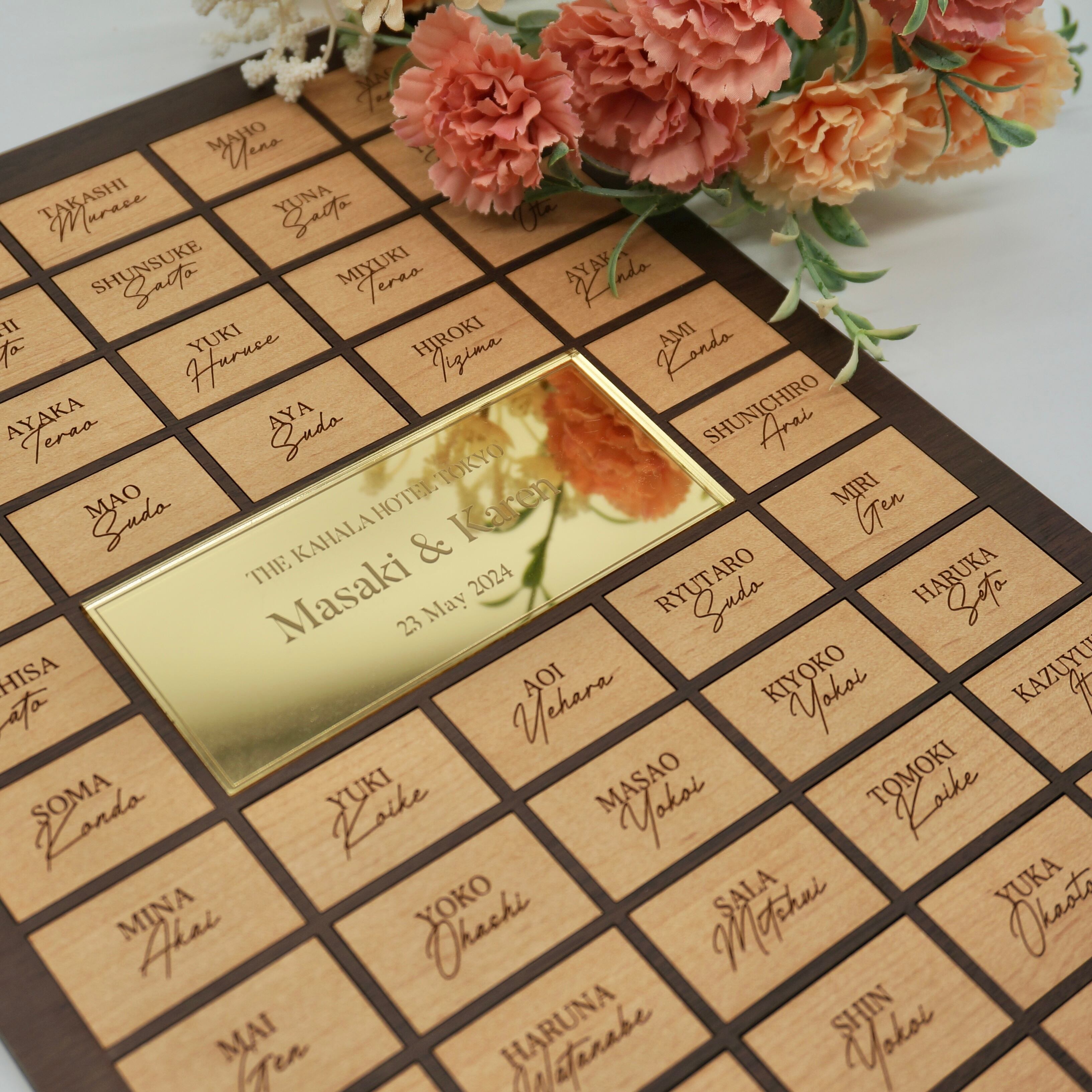 ゲストの皆様にピースをはめ込んでいただき、完成する参加型の木製結婚証明書。