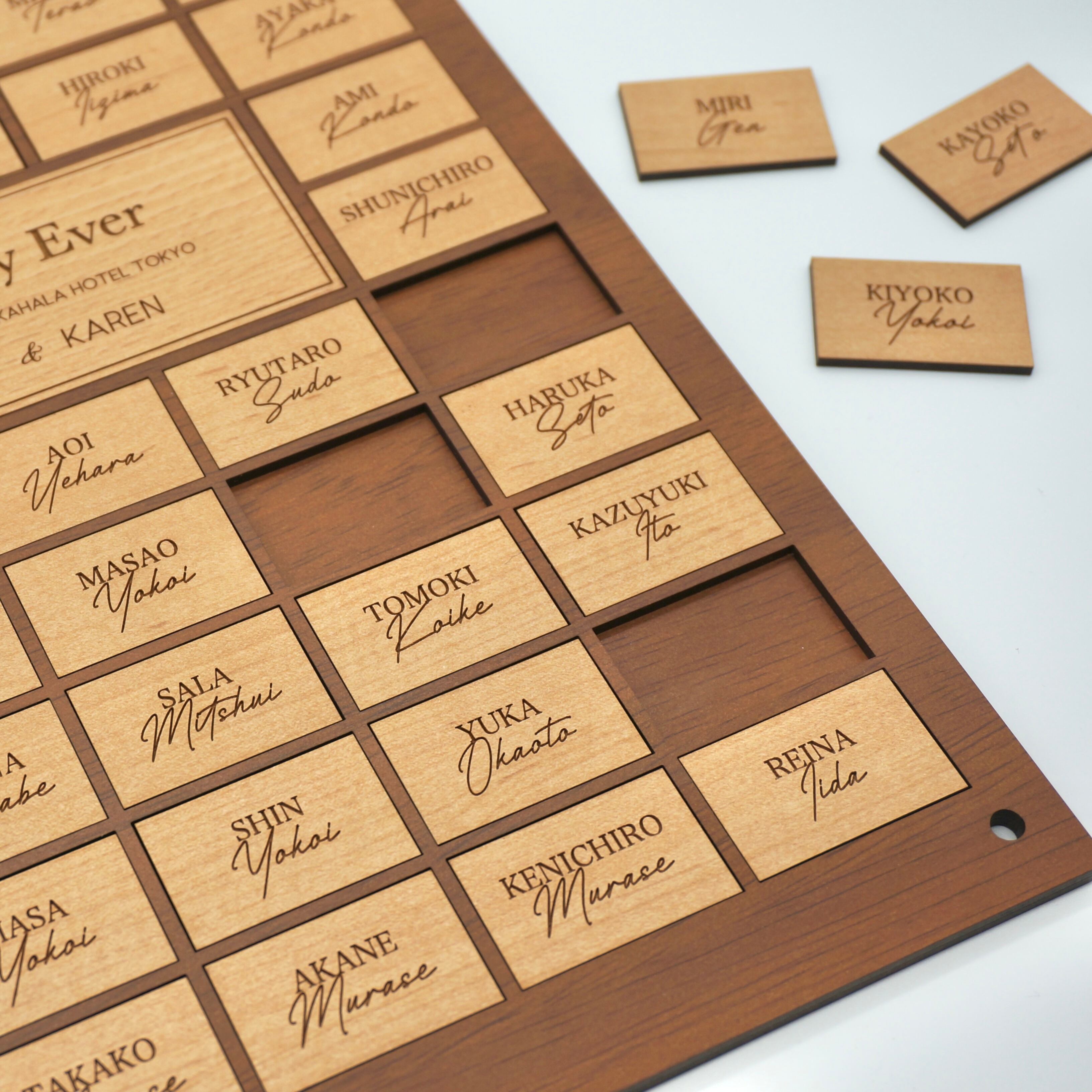 ゲストの皆様にピースをはめ込んでいただき、完成する参加型の木製結婚証明書。
